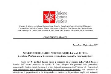 NOVE POSTI DI LAVORO NEI COMUNI DELLA VAL DI SUSA