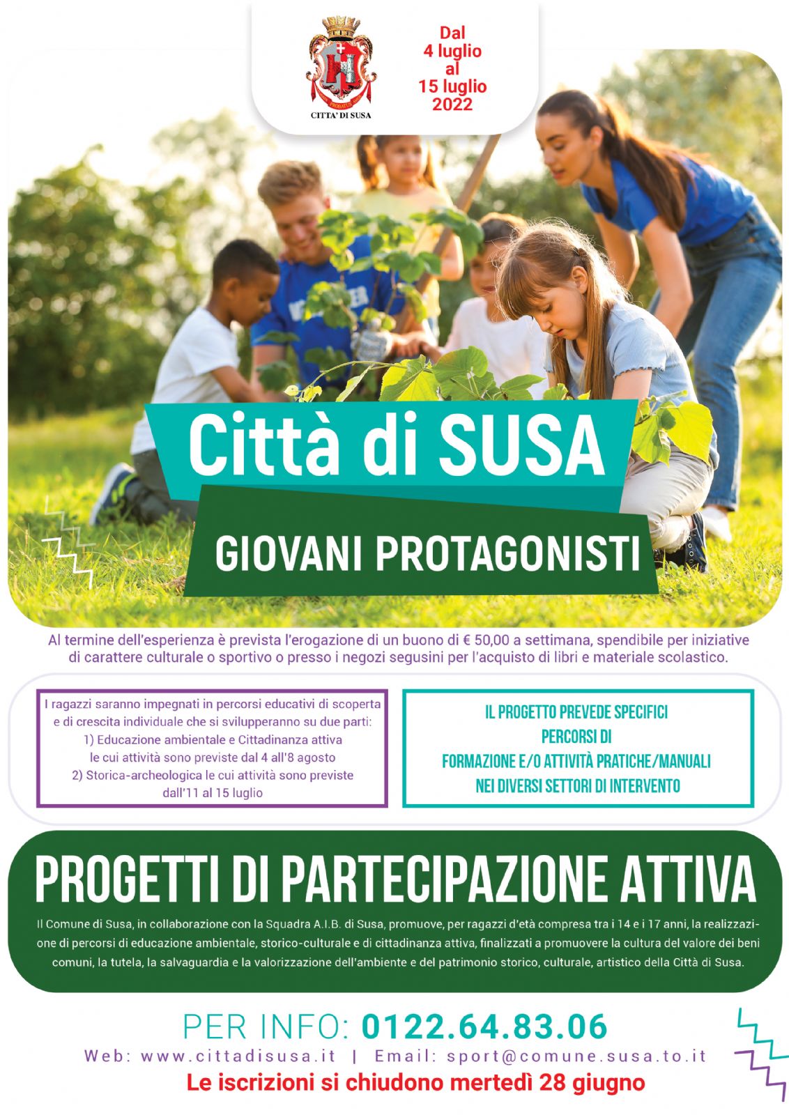 PROGETTI DI PARTECIPAZIONE ATTIVA "CITTA' DI SUSA: GIOVANI PROTAGONISTI" - 2^ EDIZIONE.