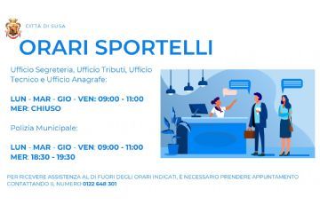 Si avvisano i cittadini che gli orari degli Uffici Comunali indicati sulla pagina Google non sono veritieri. Sono state fatte numerose segnalazioni per la correzione dei suddetti orari,...
