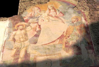 Nei pressi della cascina, sul muro di una casa disabitata, si può vedere un affresco afferente la Sacra famiglia: la Madonna con in braccio il Bambino e San Giuseppe; sul lato destro San Rocco raffigurato nei panni del pellegrino con il bastone con in cima un fagotto (al suo fianco è accucciato un cane);sul lato sinistro San Sebastiano raffigurato con i segni del suo martirio.