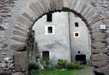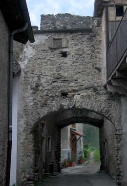 Ricetto e torre merlata del Colombé con cortile e abitazioni affacciate su di esso. Risalente al 1300 e proprietà delle famiglie Ancisa e De Bartolomei.