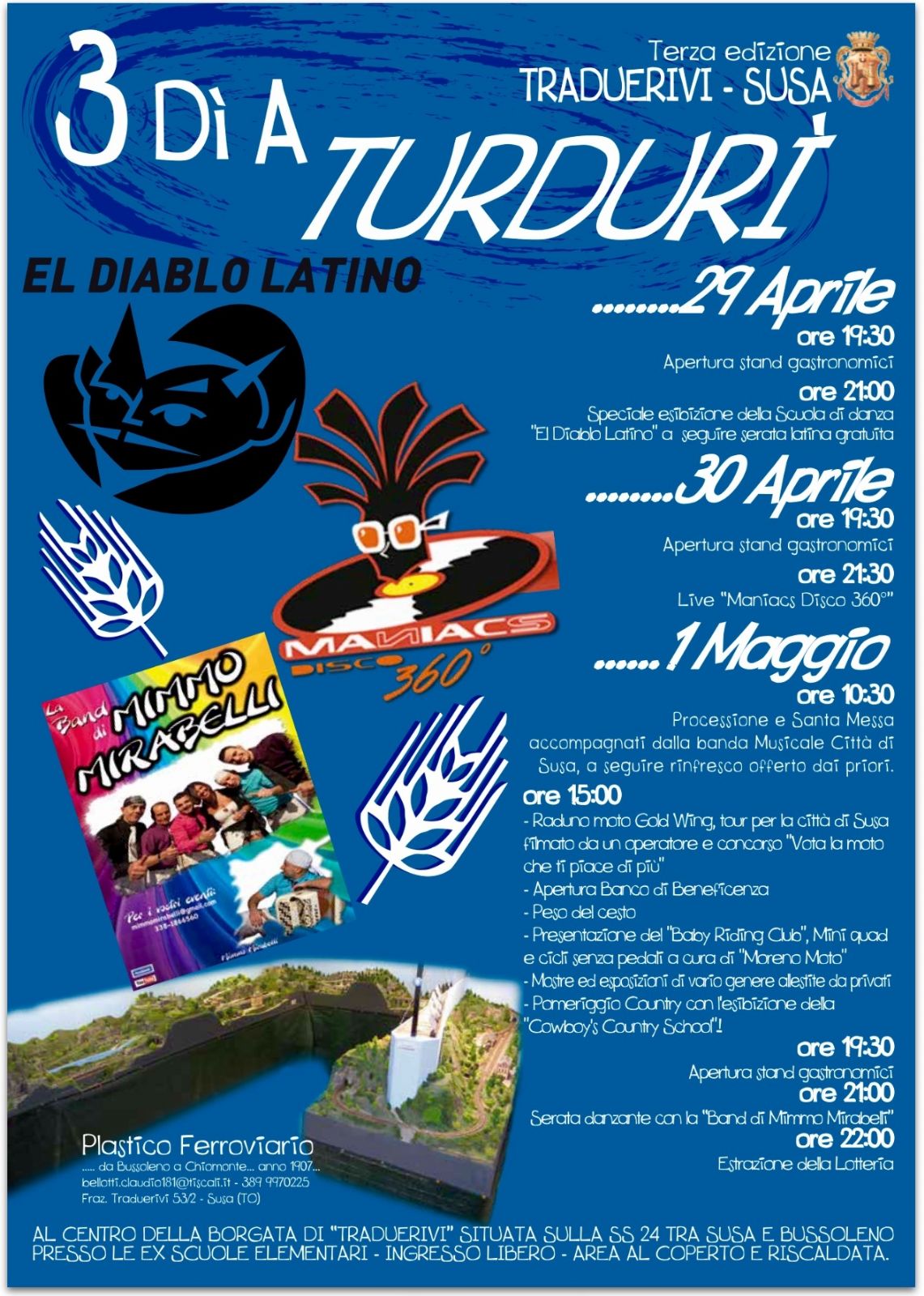 Da venerdì 29 aprile a domenica 1° maggio presso l'ex scuola elementare di Traduerivi si svolgerà la manifestazione "3 dì a Turdurì", festa patronale del paese giunta alla terza edizioni.