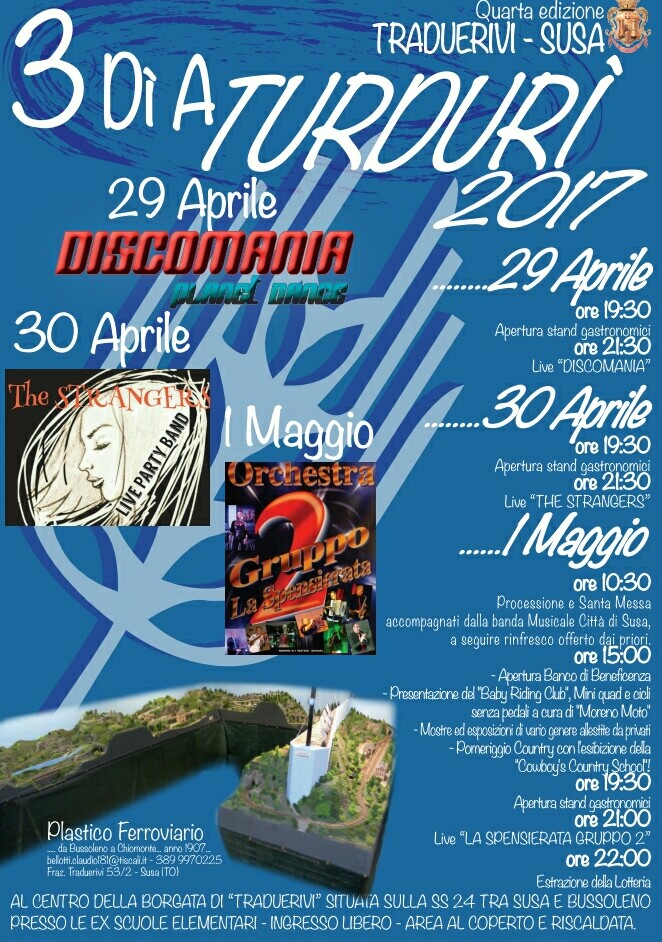 Dal 29 aprile al 1° maggio avrà luogo la quarta edizione della manifestazione "3 dì a Turdurì" con inizio nelle prime due giornata dalle ore 19.30 e il 1° maggio dalle ore 10.30. In allegato il programma dettagliato.