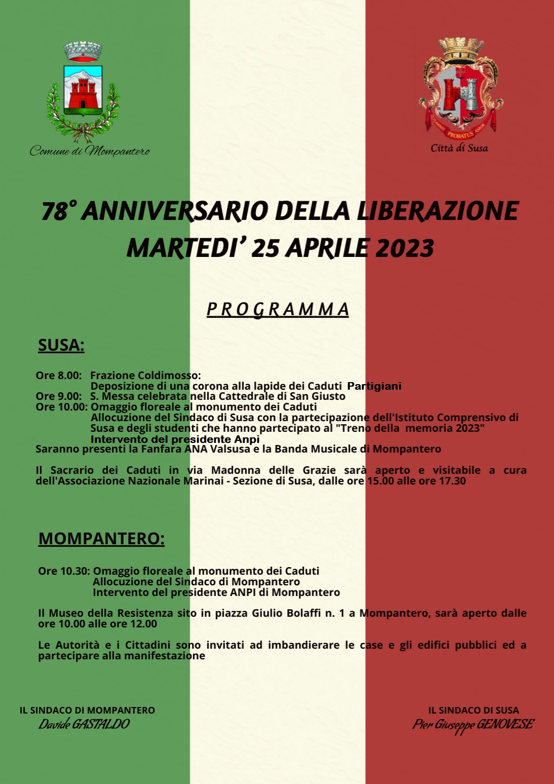 78° ANNIVERSARIO DELLA LIBERAZIONE-MARTEDI' 25 APRILE 2023