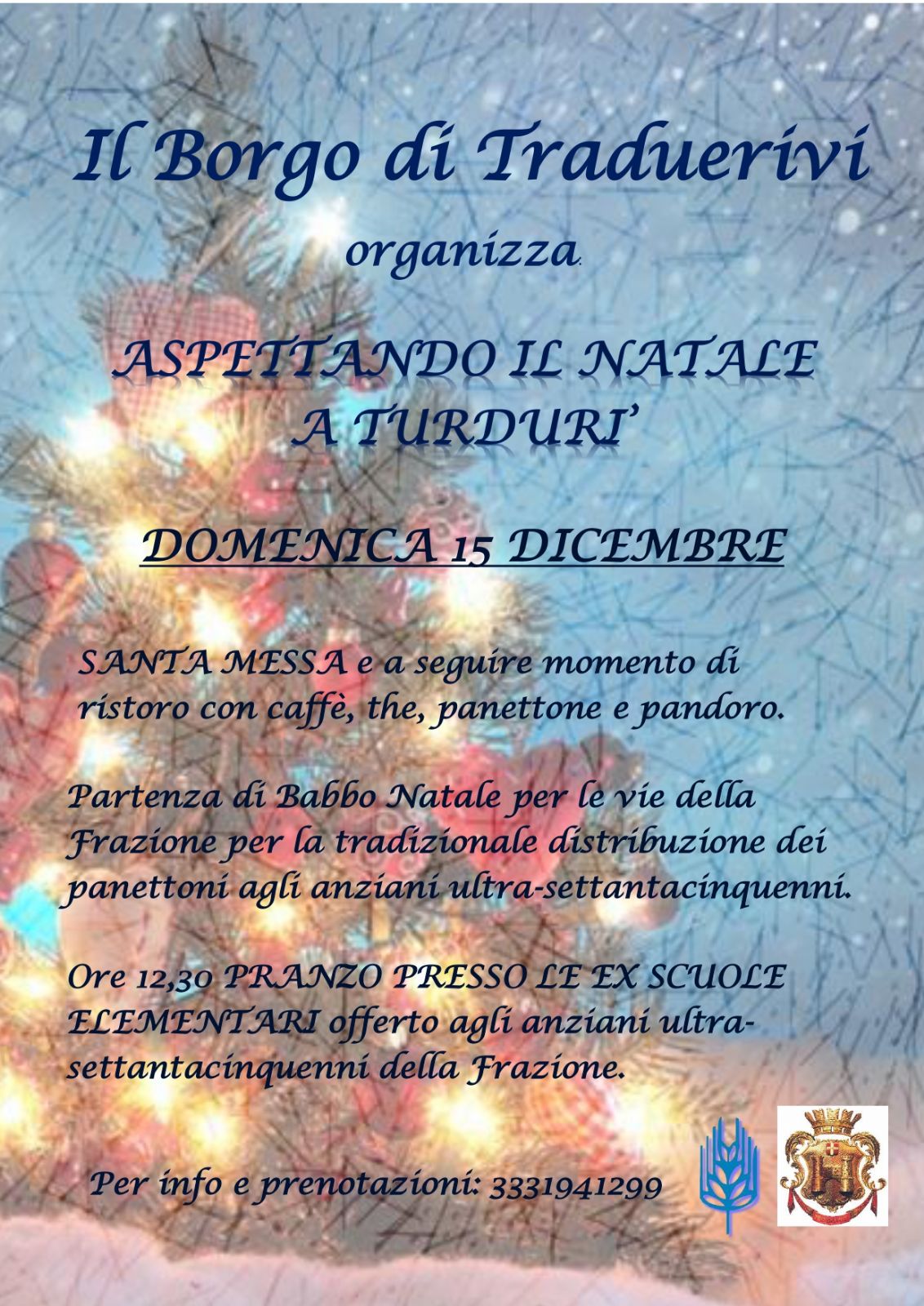 Il Borgo di Traduerivi organizza l'iniziativa "Aspettando il Natale a Turdurì" che avrà luogo nella frazione domenica 15 dicembre.