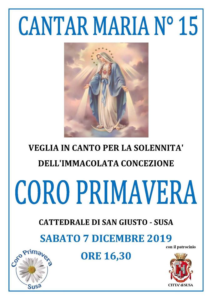 Sabato 7 dicembre, alle ore 16.30, nella Cattedrale di San Giusto, il Coro Primavera si esibirà con "Cantar Maria N° 15", veglia in canto per la solennità dell'Immacolata Concezione .