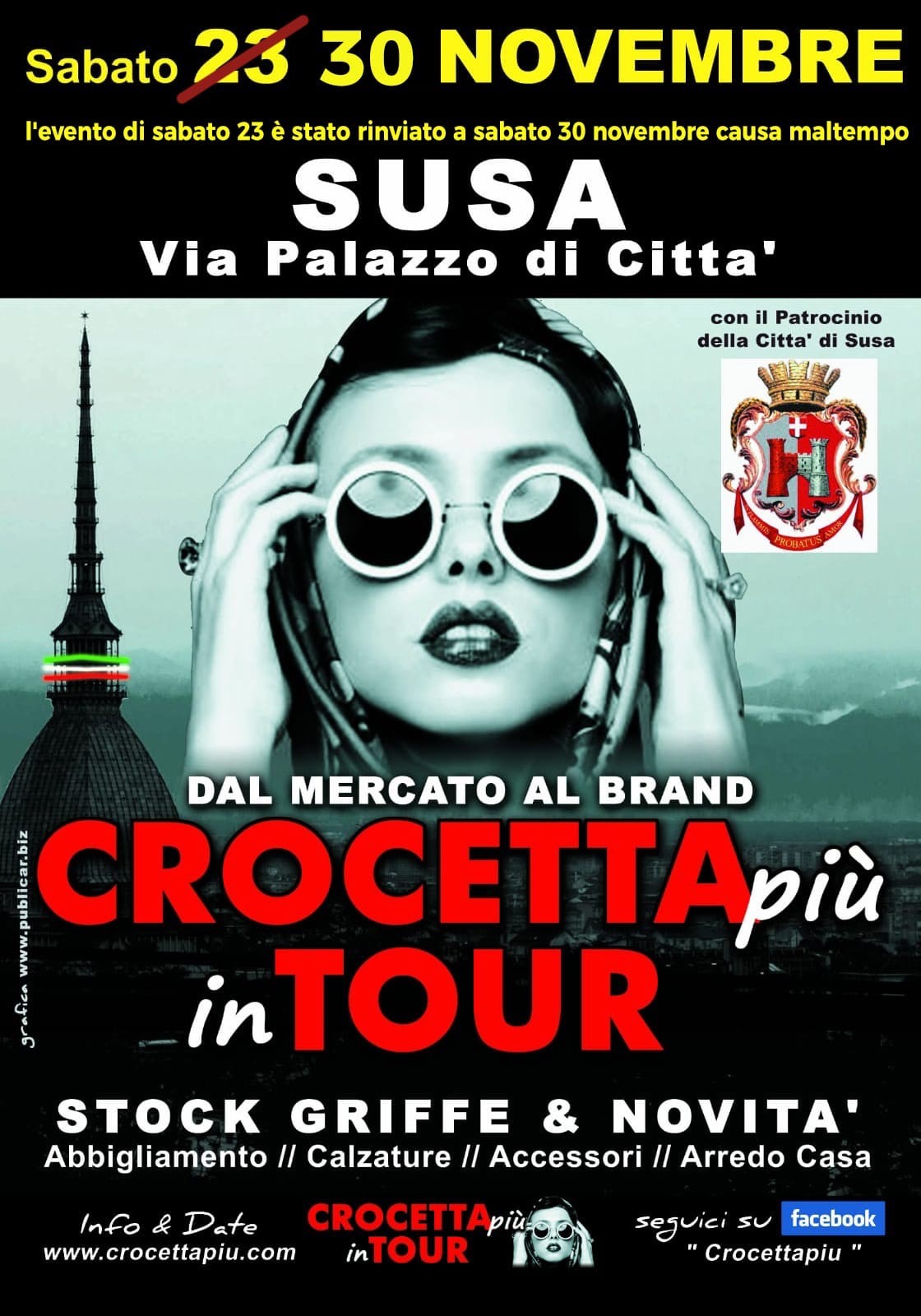 Nella giornata di sabato 30 novembre si svolgerà la manifestazione "Dal mercato al brand Crocetta più in Tour" con stock griffe & novità nel campo dell'abbigliamento, calzature, accessori e arredo casa.