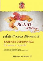 La Città di Susa organizza, in occasione della Festa delle Donne, l'evento "Donne di ValSusa e oltre", con Barbara Debernardi in dialogo con l'Assessore alle Politiche Culturali Antonita Fonzo.