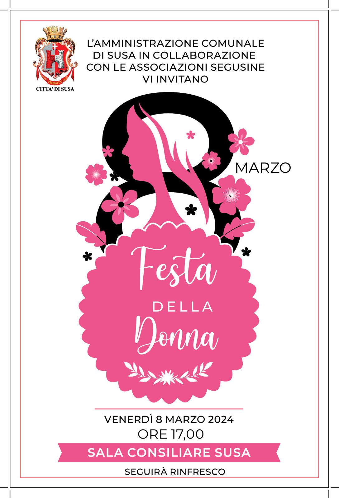 Venerdì 8 Marzo 2024 in occasione della festa della donna, l'amministrazione comunale di Susa in collaborazione con le associazioni segusine vi invitano