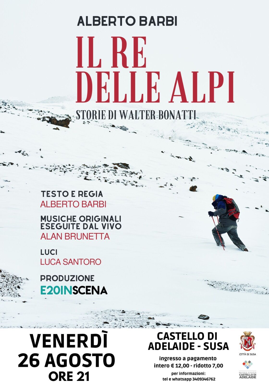 Spettacolo scritto e interpretato da Alberto Barbi che racconta la storia dello scalatore Walter Bonatti, una storia fatta di grandi salite e di impervie discese.