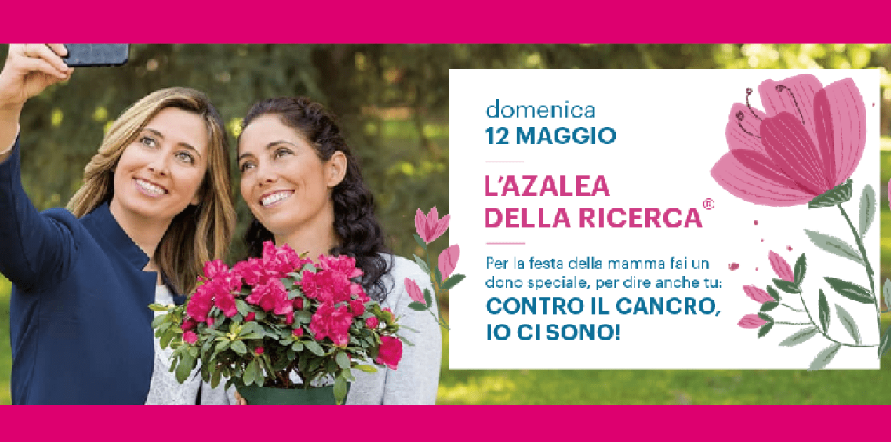 In occasione della festa della mamma domenica 12 maggio, nell'area antistante la Chiesa del Ponte, i volontari AIRC distribuiranno l’Azalea della Ricerca, preziosa alleata della salute al femminile che, dal 1984 ad oggi, ha contribuito a migliorare la qualità di vita delle donne grazie ai risultati raggiunti nell'ambito della prevenzione, diagnosi e cura del cancro al seno e agli organi riproduttivi.