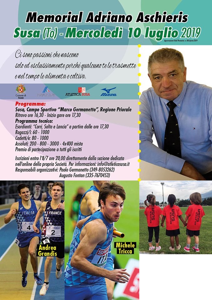 Mercoledì 10 luglio, con ritrovo alle ore 16.30, presso gli impianti sportivi comunali in Regione Priorale, avrà luogo la 2^ edizione del Memorial Adriano Aschieris. L'inizio delle gare è previsto per le ore 17.30.