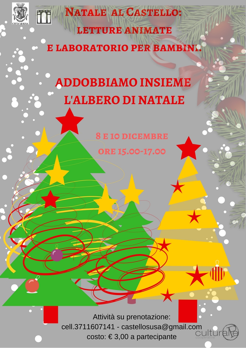 "Natale al Castello" offre la possibilità ai bambini di partecipare alle letture animate e al laboratorio "Addobbiamo l'Albero di Natale" che si svolgeranno venerdì 8 e domenica 10 dicembre, dalle ore 15.00 alle ore 17.00.