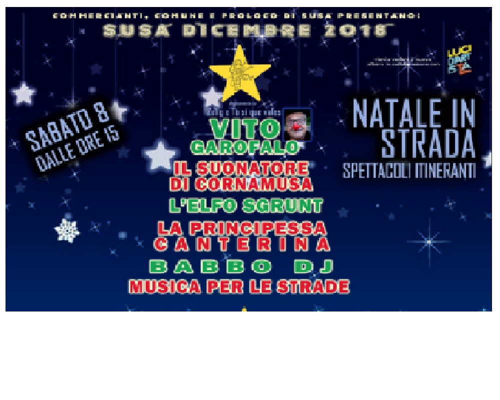 L'Associazione Pro Susa e i commercianti organizzano per sabato 8 dicembre, a partire dalle ore 15.00, spettacoli itineranti per la città.