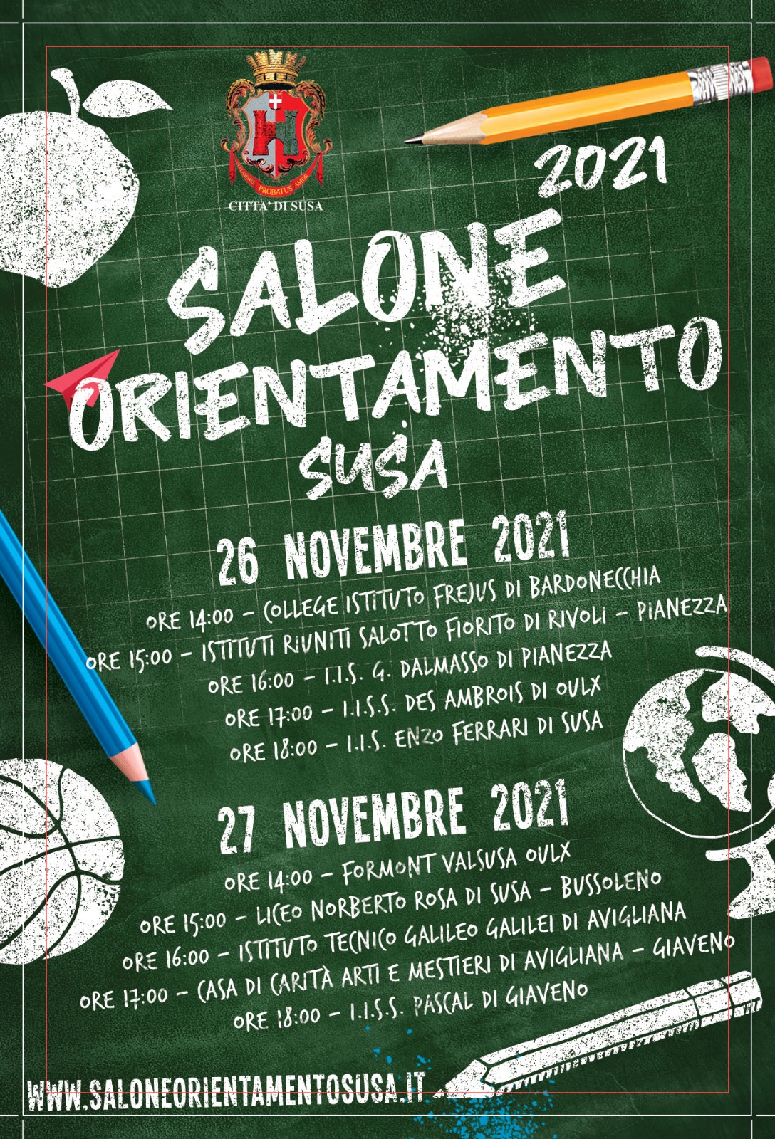 Dopo il grande successo dello scorso anno, torna, questa volta raddoppiando su due giornate, Venerdì 26 e sabato 27 novembre il Salone dell’Orientamento a distanza Città di Susa, l’importante evento dedicato alle famiglie e ragazzi di terza media, ma non solo, che possono conoscere l’offerta formativa che caratterizzano i diversi percorsi di studio degli Istituti Superiori di II grado e delle scuole di formazione del territorio.