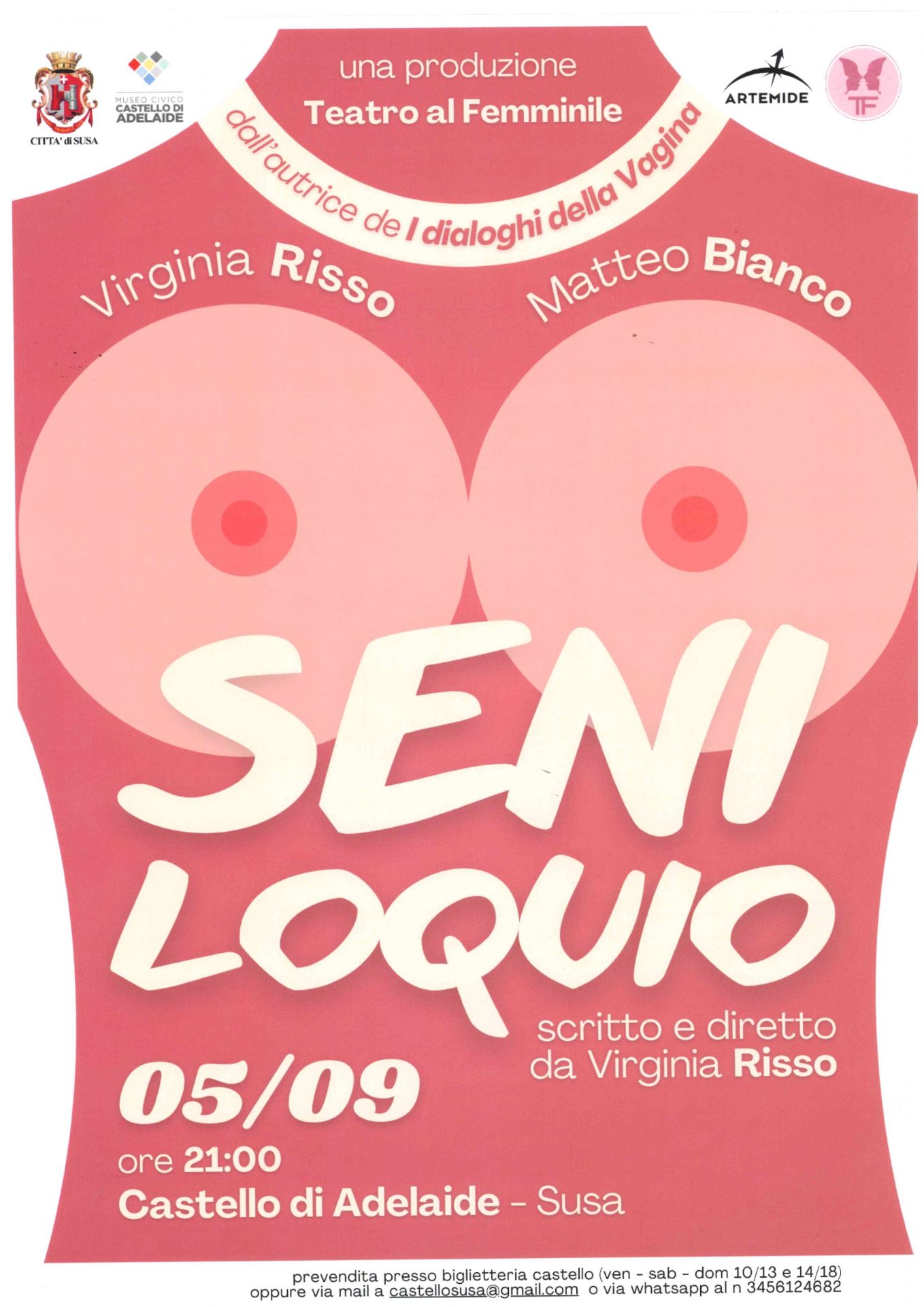 Prevendita biglietto presso biglietteria del castello (venerdì - sabato - domenica con orario 10:00-13:00 14:00-18:00) oppure via email castellosusa@gmail.com o via Whastapp 3456124682