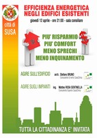 presso la sala Consiliare del Municipio, la Città di Susa organizza una serata dedicata all’efficienza energetica negli edifici esistenti.