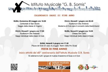 L'Istituto Musicale G.B. Somis organizza, con il patrocinio della Città di Susa, la festa di fine anno - Inizio attività del 40° anniversario.