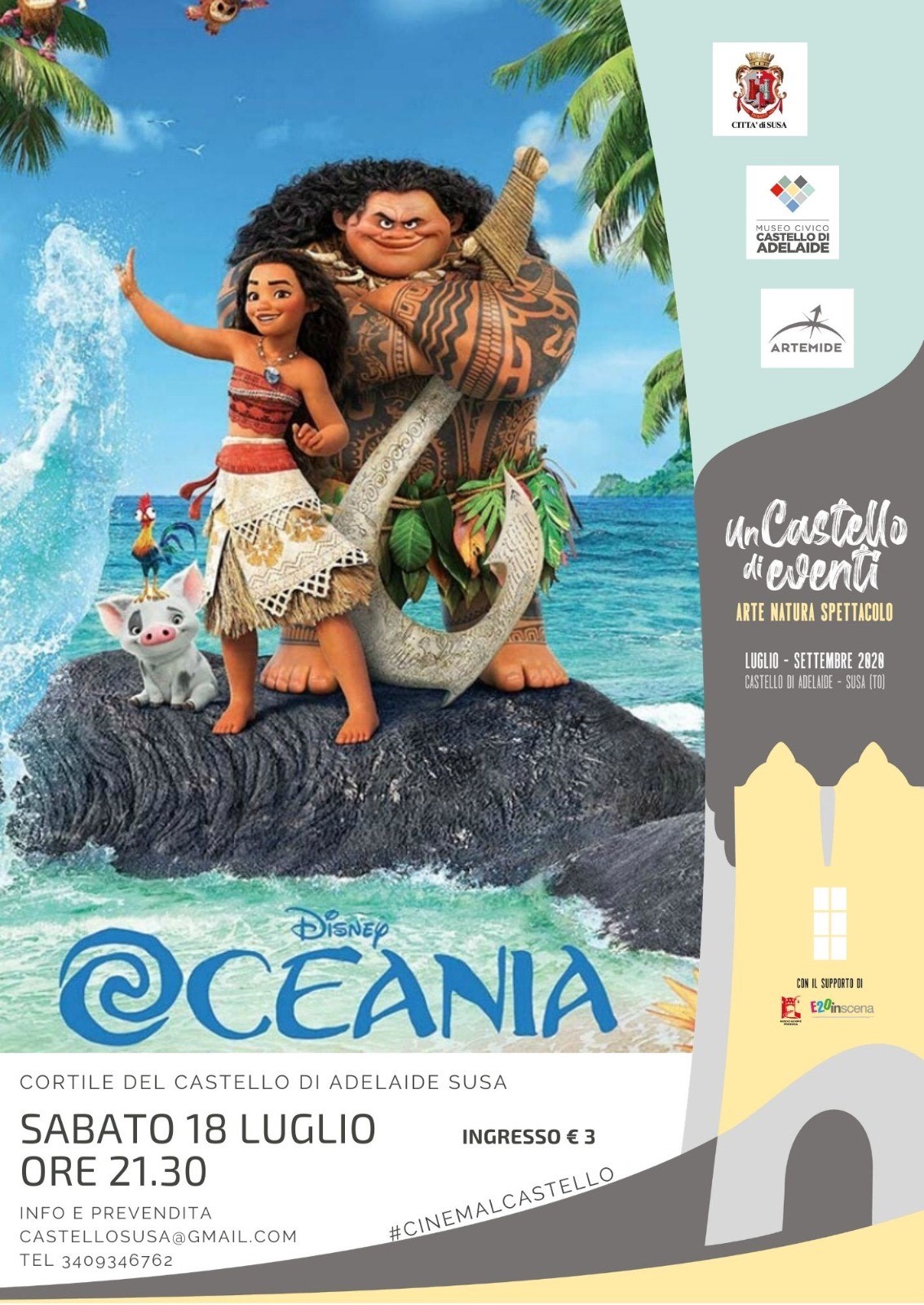 Sabato 18 luglio alle ore 21,30 "Oceania", film di animazione Disney 2016 per tutta la famiglia.