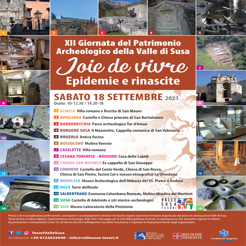 “Valle di Susa. Tesori di Arte e Cultura Alpina”, in collaborazione con la Soprintendenza Archeologia, Belle Arti e Paesaggio per la Città Metropolitana di Torino, organizza la dodicesima Giornata del Patrimonio Archeologico della Valle di Susa.