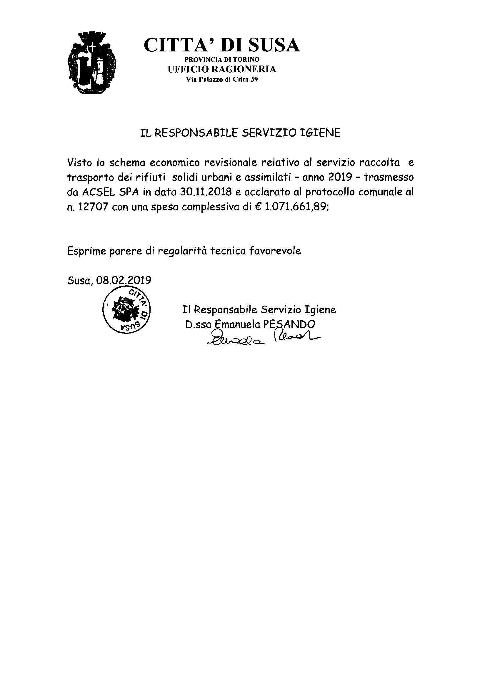 Tassa Rifiuti Puntuale. Approvazione Piano Finanziario e Tariffe per l'anno 2019.