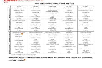 MENU' INVERNALE MENSA SCOLASTICA 2022-23