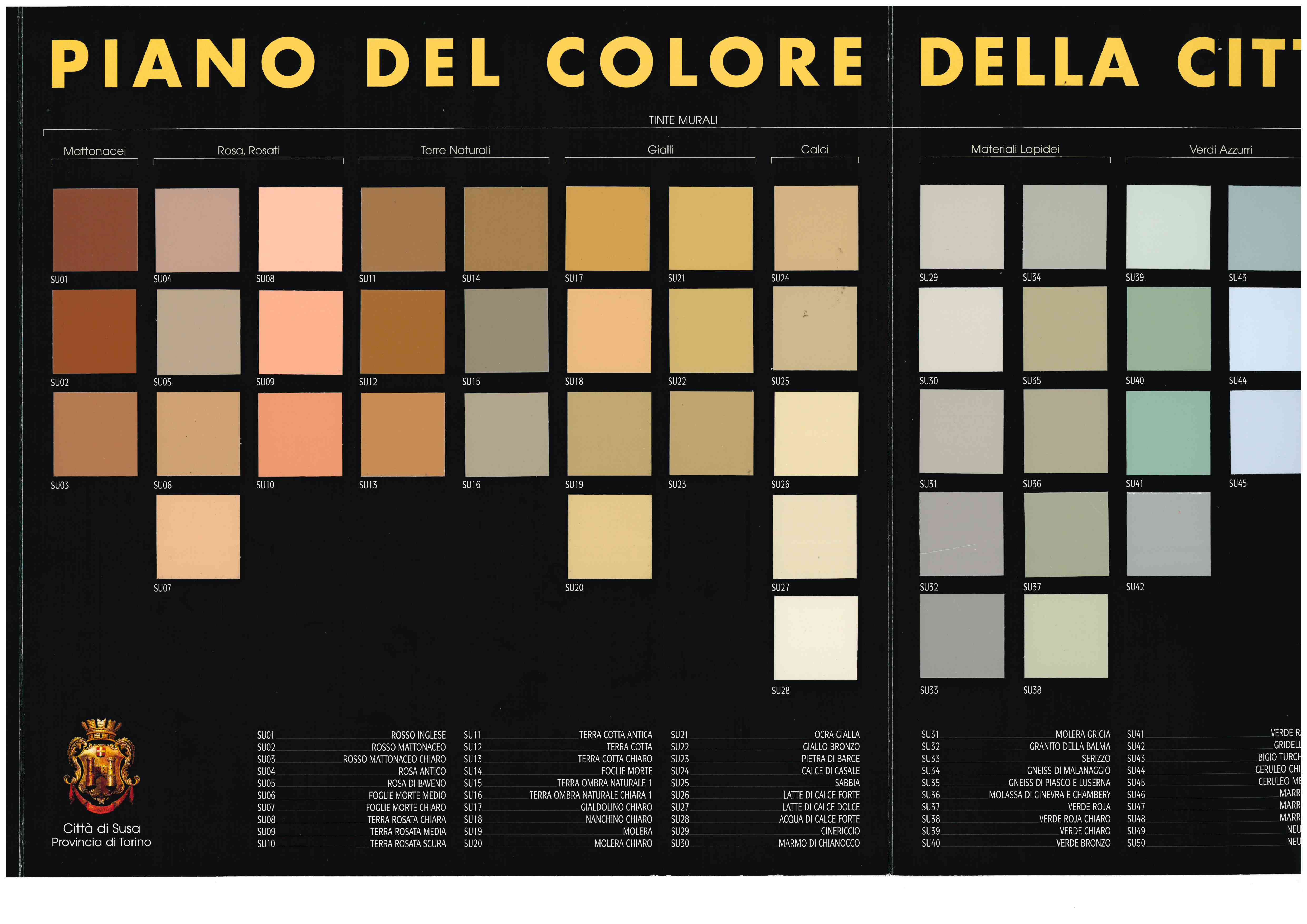 La Città di Susa ha adottato il Piano Colore che definisce le tinte utilizzabili per lavori di ritinteggiatura anche parziale della facciate, compresi infissi e ringhiere, visibili dallo spazio pubblico.