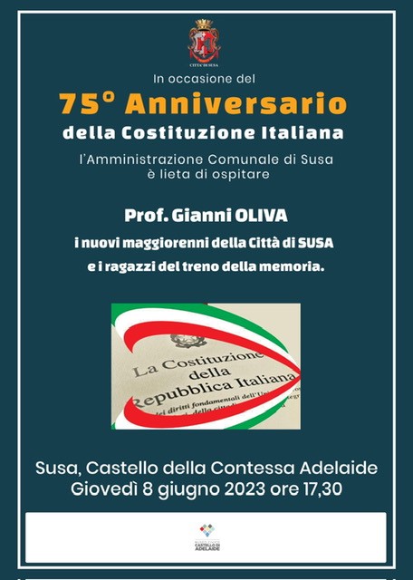 In occasione del 75° anniversario della Costituzione Italiana l'Amministrazione Comunale è lieta di ospitare il prof. Gianni Oliva, i nuovi maggiorenni e i ragazzi del Treno della Memoria.