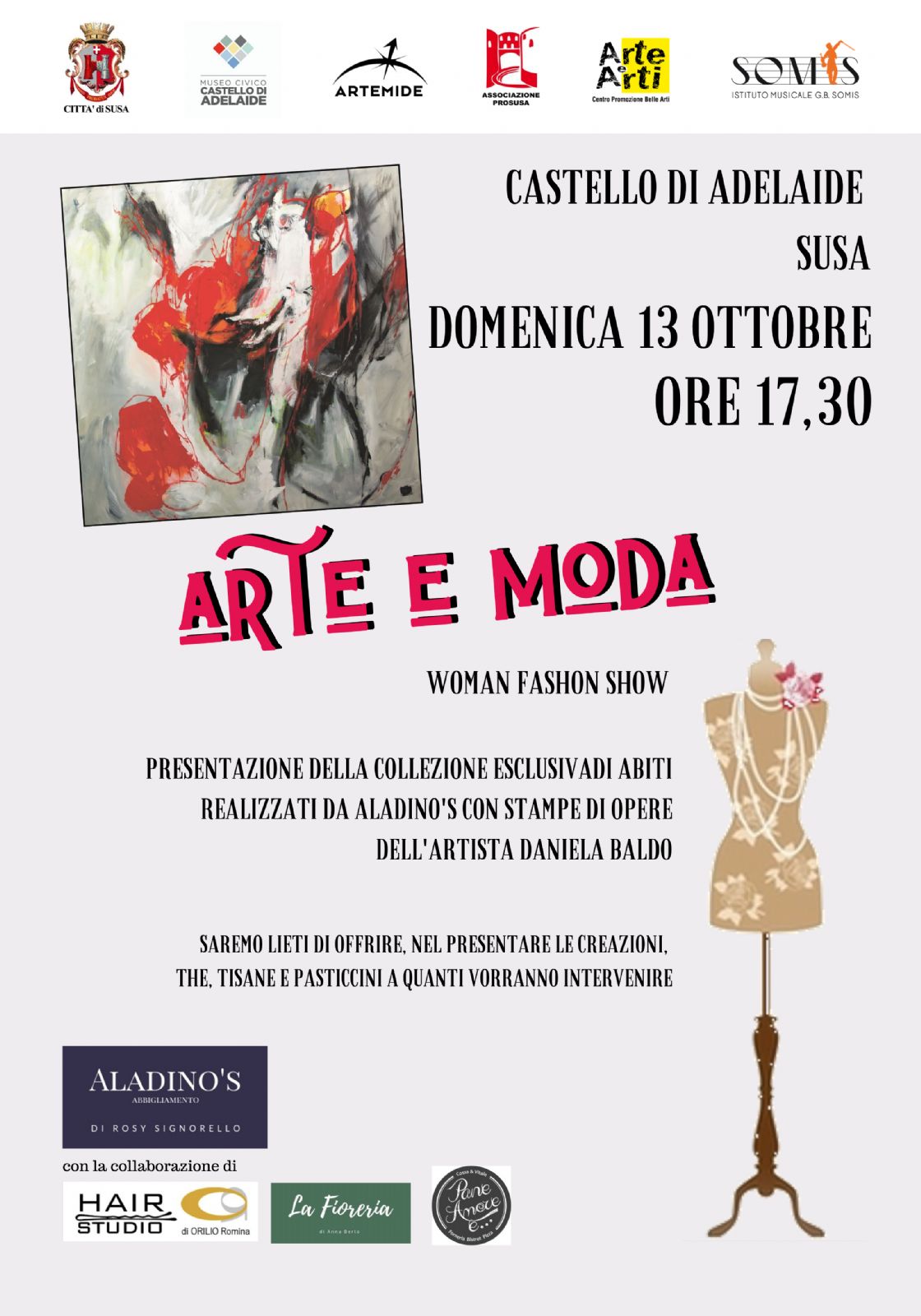 Domenica 13 ottobre, alle ore 17.30, c/o il Castello della Contessa Adelaide, avrà luogo "Arte e Moda", presentazione della collezione esclusiva di abiti realizzati da Aladino's con stampe di opere dell'artista Daniela Baldo.
