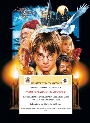 Sabato 22 febbraio, alle ore 10.30, presso la Biblioteca Civica di Susa, si terrà un laboratorio per bimbi dai 3 ai 6 anni tra maschere di Carnevale e libri.