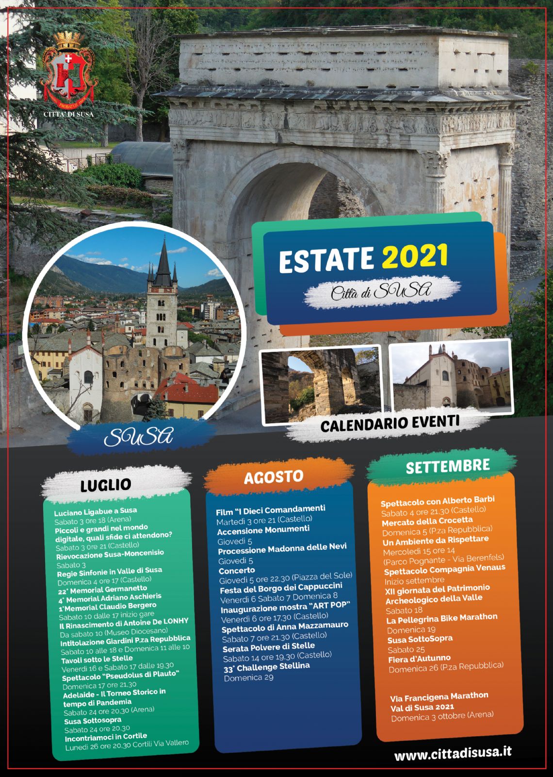 La Città di Susa presenta la programmazione degli eventi che verranno realizzate nel corso dell'estate sul proprio territorio.