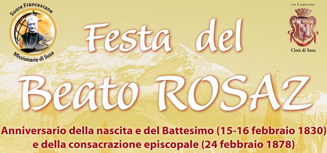 In occasione dell'Anniversario della sua nascita e del Battesimo (15-16 febbraio 1830) e della consacrazione episcopale (24 febbraio 1878), l'Istituto Suore Francescane Missionarie di Susa organizzano la Festa del Beato Rosaz.