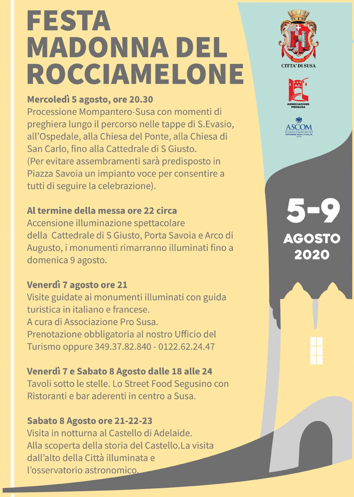5 AGOSTO 2020. In arrivo la festa patronale ed un nuovo progetto che porterà innovazione nella nostra Città. Proiezioni architetturali e scenografiche spettacolari sulla Porta Savoia, sulla Cattedrale di San Giusto e sull'Arco di Augusto con accensione alle ore 22 circa al termine della Messa dedicata alla Madonna del Rocciamelone, per poi proseguire nei giorni successivi con musica, street food segusino, visite guidate turistiche ai monumenti illuminati in notturna, al Castello della Contessa Adelaide e all'osservatorio astronomico.