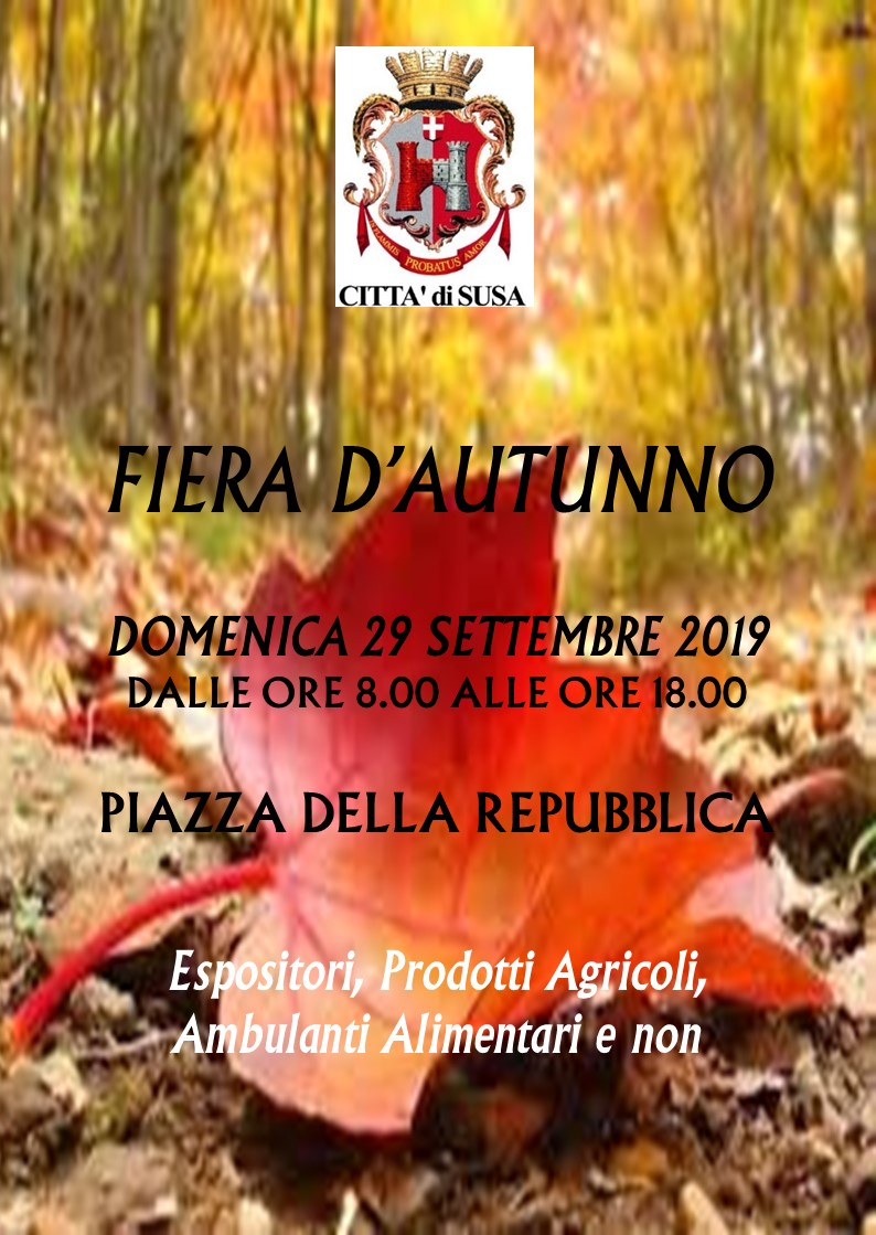 Domenica 29 settembre, dalle ore 8.00 alle ore 18.00, avrà luogo in Piazza della Repubblica, la consueta Fiera d'Autunno.