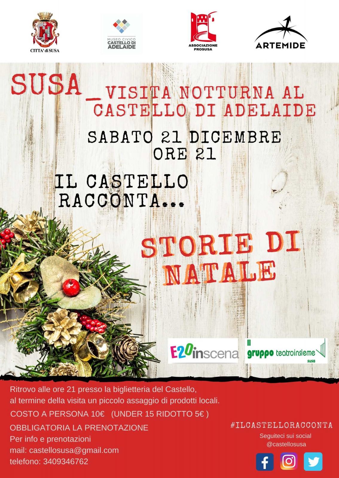 Per info e prenotazioni (obbligatorie) - mail: castellosusa@gmail. com - telefono: 340.9346762.