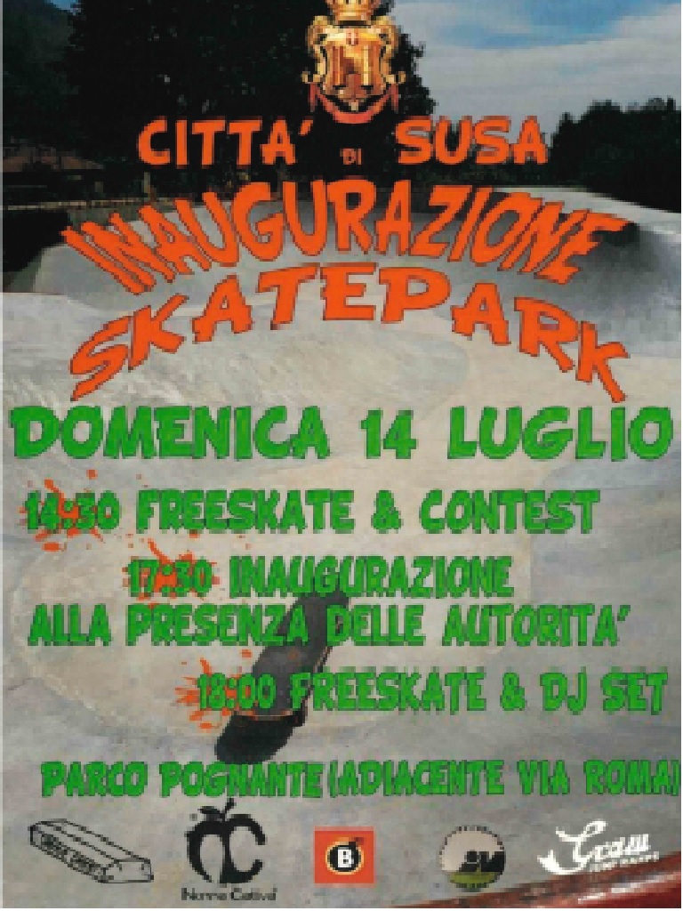 Domenica 14 luglio, alle ore 17.30, c/o il Parco Pognante di Via Berenfels (adiacente Via Roma) avrà luogo l'inaugurazione della pista di skatepark, preceduta alle ore 14.30 da freeskate & contest.