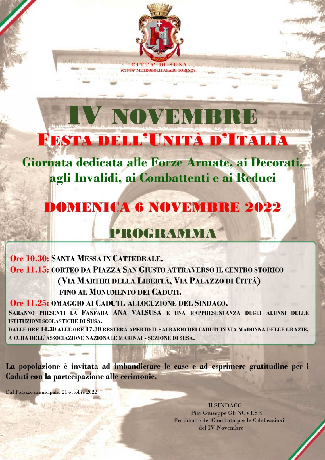 SUSA, DOMENICA 6 NOVEMBRE 2022, DALLE ORE 10.30, COME DA PROGRAMMA ALLEGATO