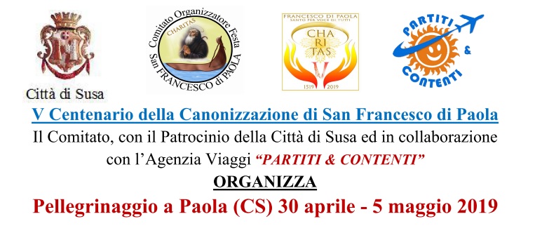 In occasione del V Centenario della Canonizzazione di San Francesco di Paola, il Comitato, con il patrocinio della Città di Susa e in collaborazione con l'Agenzia "Partite & Contenti", organizza dal 30 aprile al 5 maggio il pellegrinaggio a Paola.