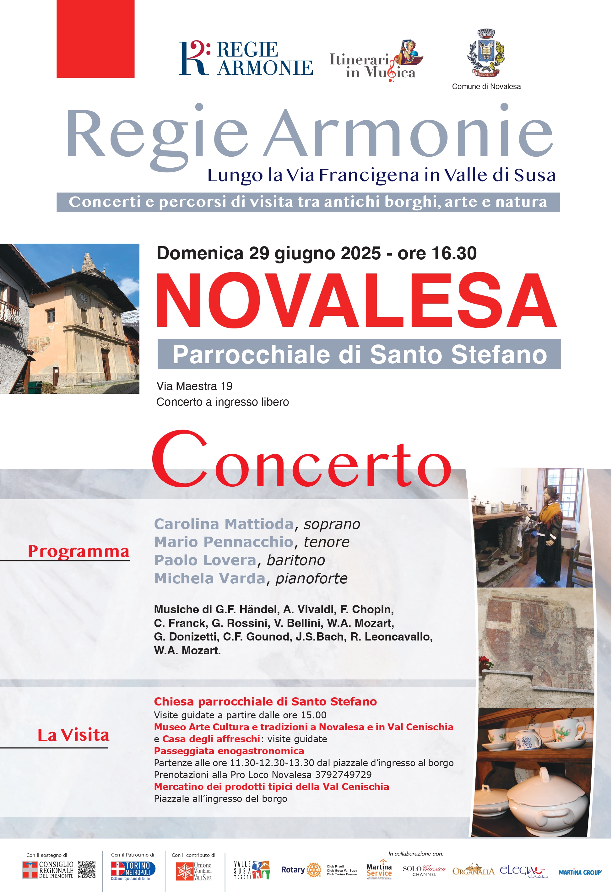 I concerti sono realizzati con il sostegno della Regione Piemonte, con il patrocinio della Città Metropolitana, con il contributo dell’Unione Montana Valle Susa, di Valsusa Tesori e dei Rotary Club Rivoli, Susa Valsusa e Torino Duomo. Si ringraziano per il sostegno i Comuni di volta in volta coinvolti nella rassegna. Hanno collaborato Solo Classica Channel, Elegia Classic e Organalia.