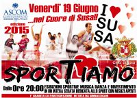La Città di Susa, in collaborazione con Ascom Susa e la partecipazione di Associazione Pro Susa e Associazione Impresa Sviluppo Susa, organizza per venerdì 19 giugno 2015 la quarta edizione di “Sportiamo”, festa dedicata allo sport.
