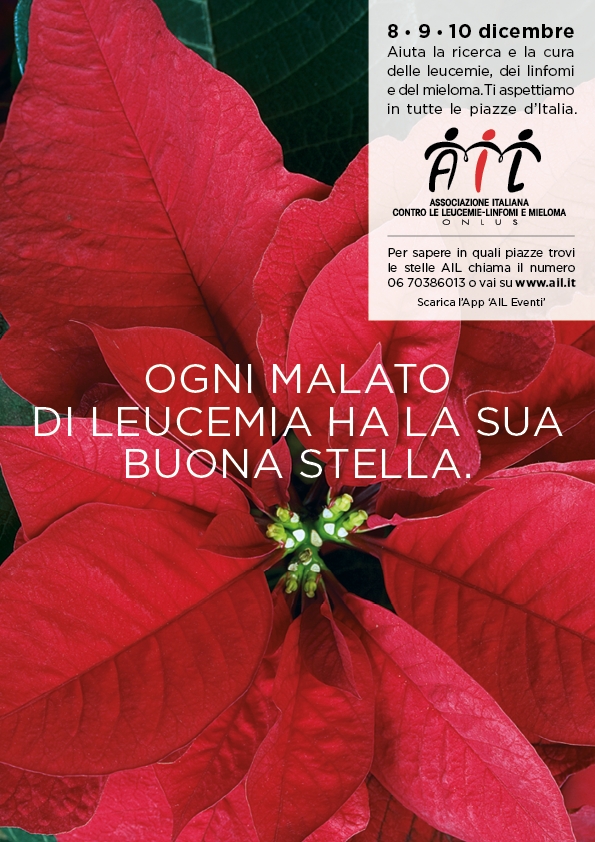 Nelle giornate dell'8, 9 e 10 dicembre, in Via Roma, verranno distribuite ai passanti le stelle di Natale offerte dai volontari dell'AIL - Associazione Piemontese contro le leucemie Onlus - in cambio di un contributo associativo.