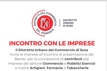 Il distretto urbano del commercio di Susa invita le imprese all'incontro per la presentazione del bando per la concessione di contributi alle imprese del settore Commercio e Pubblici Esercizi e...