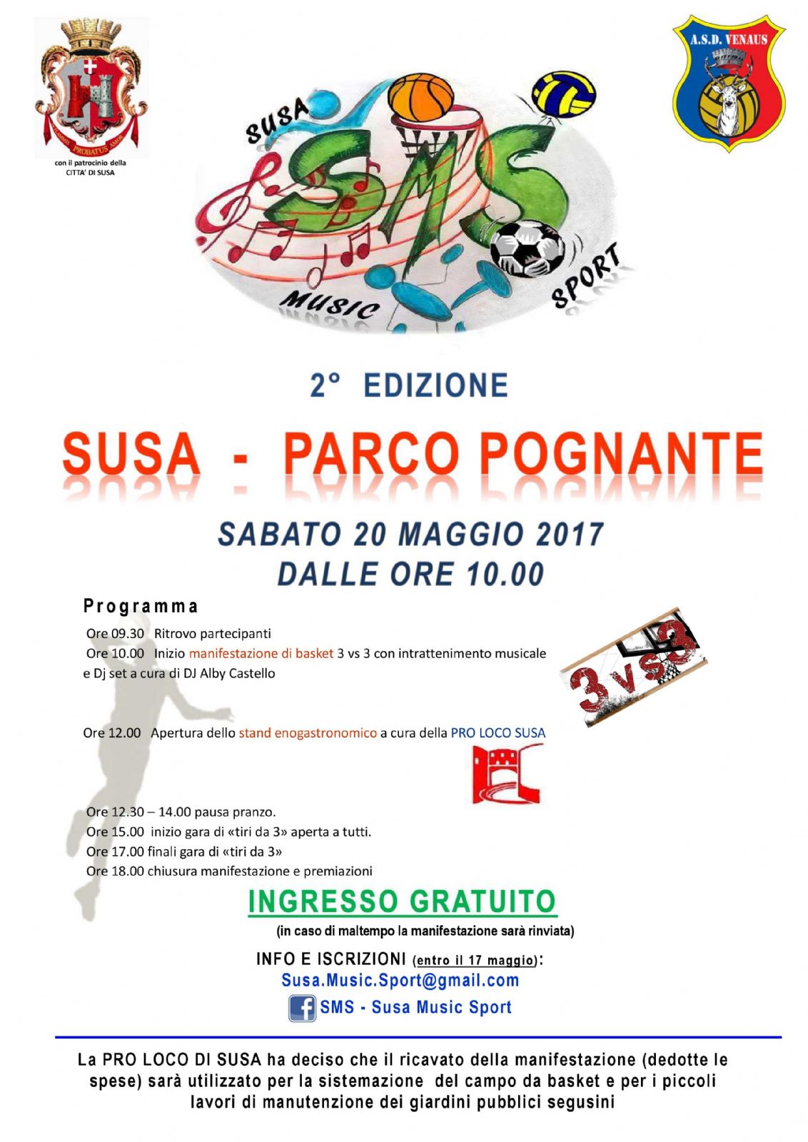 Sabato 20 maggio, dalle ore 10.00, presso il Parco Pognante di Via Berenfels, avrà luogo la seconda edizione della manifestazione "Susa Music Sport", organizzata dall'A.S.D. Venaus.