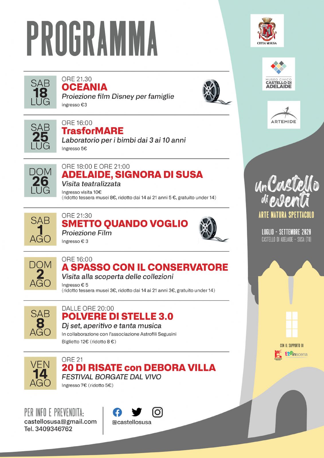 La Città di Susa e l'Associazione Artemide presentano l'iniziativa "UN CASTELLO DI EVENTI" - Arte, natura, spettacolo, che verrà realizzata al Castello di Adelaide dal 18 luglio al 27 settembre.