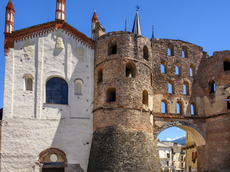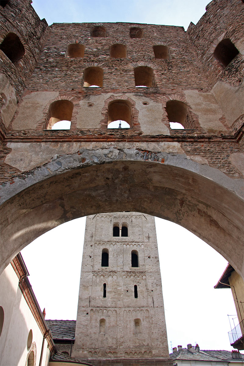Per proteggere la città di Susa dalle invasioni, nel II secolo d.C. la si recinge (almeno in parte) con spesse mura munite di torri circolari. Sui diversi lati vennero aperte delle porte e sul lato nord - sud si trova Porta Savoia , costituita da un solo fornice.