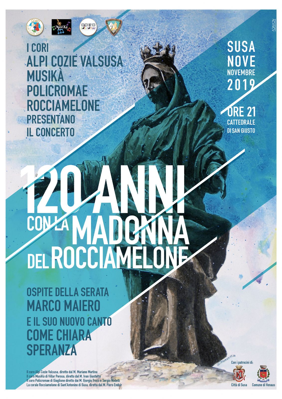 Sabato 9 novembre, alle ore 21.00, nella Cattedrale di San Giusto, avrà luogo il concerto dei Cori Alpi Cozie Valsusa, Musikà, Policromae e Rocciamelone "120 anni con la Madonna del Rocciamelone.