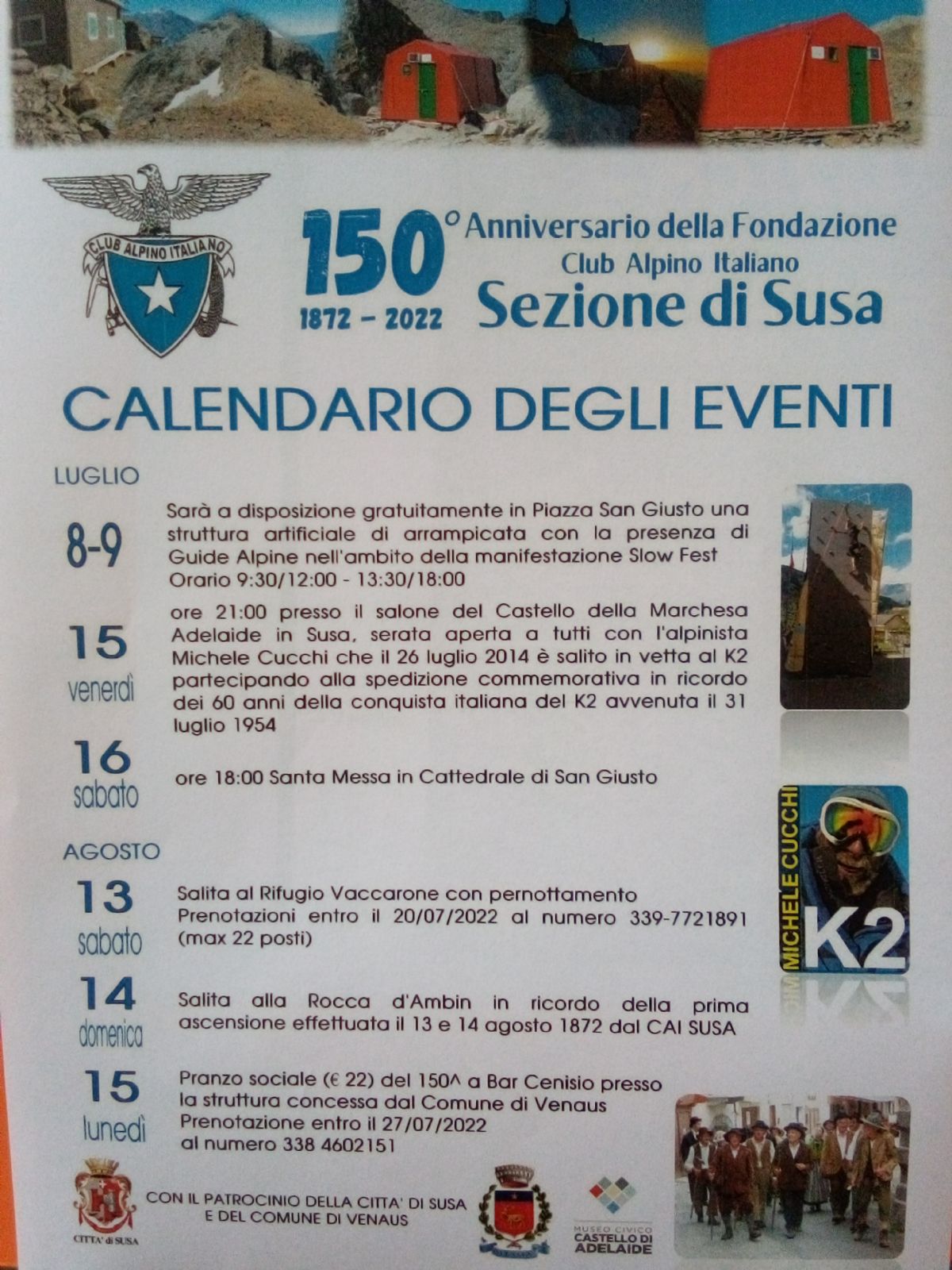 150° ANNIVERSARIO DELLA FONDAZIONE CLUB ALPINO ITALIANO SEZIONE DI SUSA 1872-2022