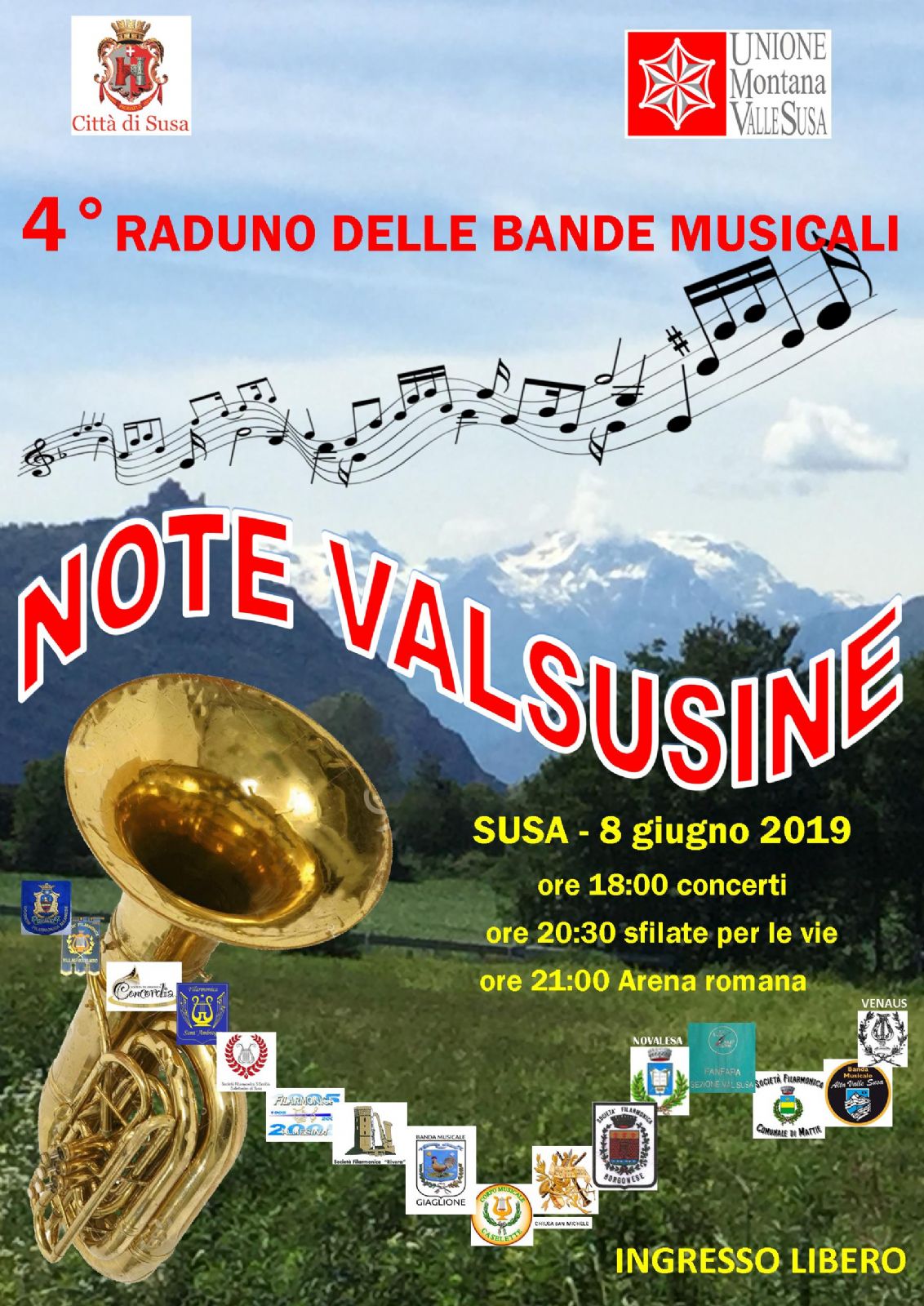 Sabato 8 giugno avrà luogo il 4° Raduno delle Bande Musicali - Note Valsusine, a cura dell'Unione Montana Valle Susa.