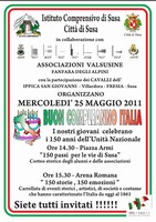 L'Istituto Comprensivo di Susa in collaborazione con le Associazioni valsusine, la Fanfara degli Alpini e con la partecipazione dei Cavalli dell'Ippica San Giovanni - Villardora - Fresia - Susa organizzano mercoledì 25 maggio 2011