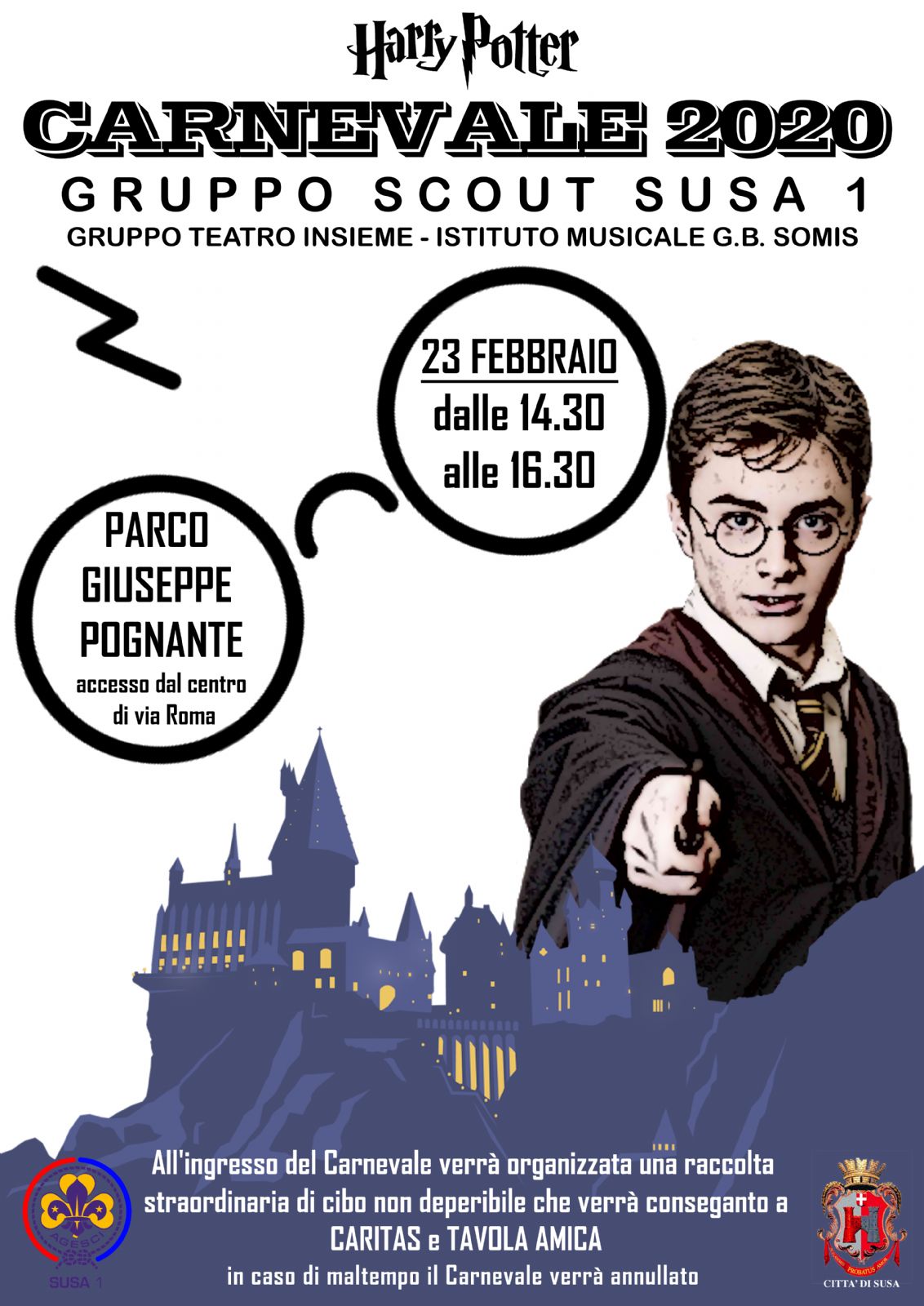 Domenica 23 febbraio, a partire dalle ore 14.30, si svolgerà nel Parco Pognante di Via Berenfels il Carnevale dei Bambini. A loro verrà presentato il Mondo Magico di Harry Potter e il suo universo immaginario.